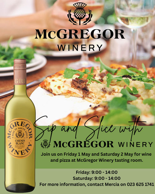 We’re excited to let you know about our upcoming Sip n Slice event at McGregor Winery. The event will feature a delicious combination of pizzas and our wines — a perfect outing for locals and visitors alike.